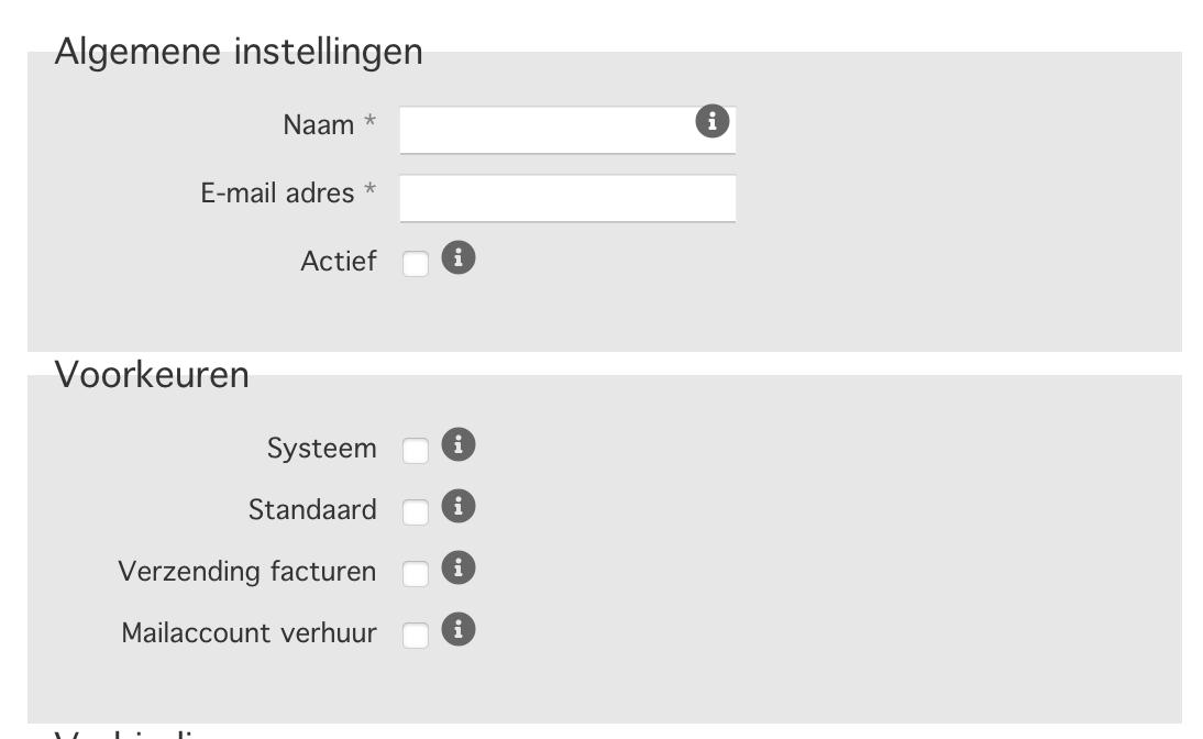 Standaard: 1 mail-account dient als standaard te worden gemarkeerd voor het verzenden van berichten. Dit account wordt tevens gebruikt om belangrijke berichten vanuit het systeem aan je te kunnen sturen.