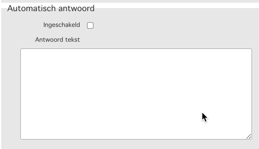 Wanneer het automatisch antwoord inschakelt staat zal de tekst, zoals ingevoerd in het "Antwoord tekst"-veld, naar de verzender van de binnenkomende e-mail(s) worden verstuurd.