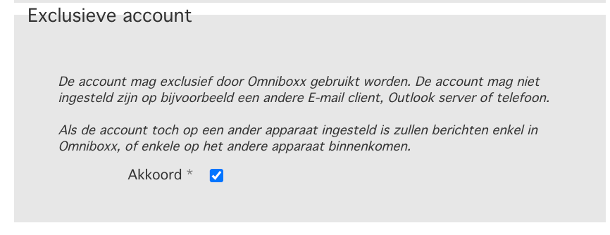 Aangevinkt indien je akkoord gaat dat dit account exclusief door Omniboxx gebruikt kan worden.
