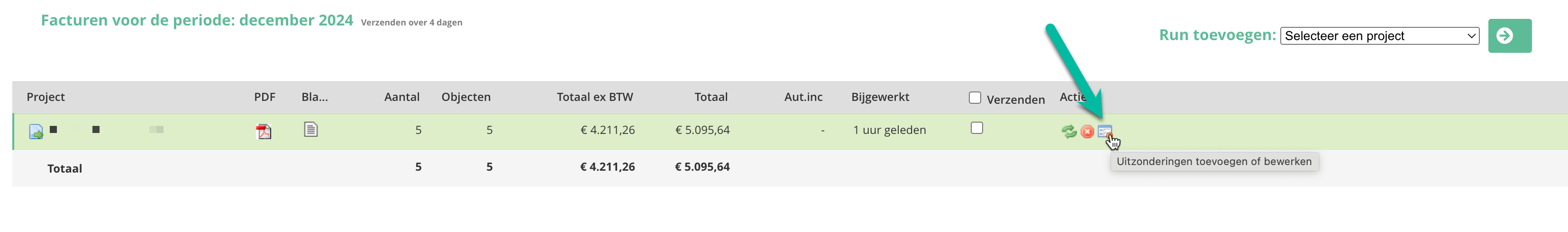 Ad 1.1: Instellen uitzondering via de aankomende factuurrun