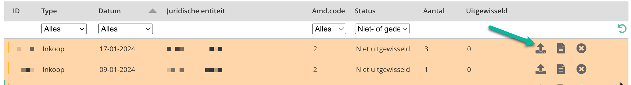 Als de oorzaak van het niet uitwisselen van de facturen is opgelost/weggenomen kan de batch opnieuw worden aangeboden voor uitwisseling door het "uitwisselings-icoon" aan te klikken.