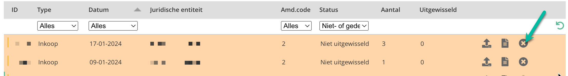 Oude batches die niet meer uitgewisseld hoeven te worden kunnen worden verwijderd door het aanklikken van het "verwijder-icoon".