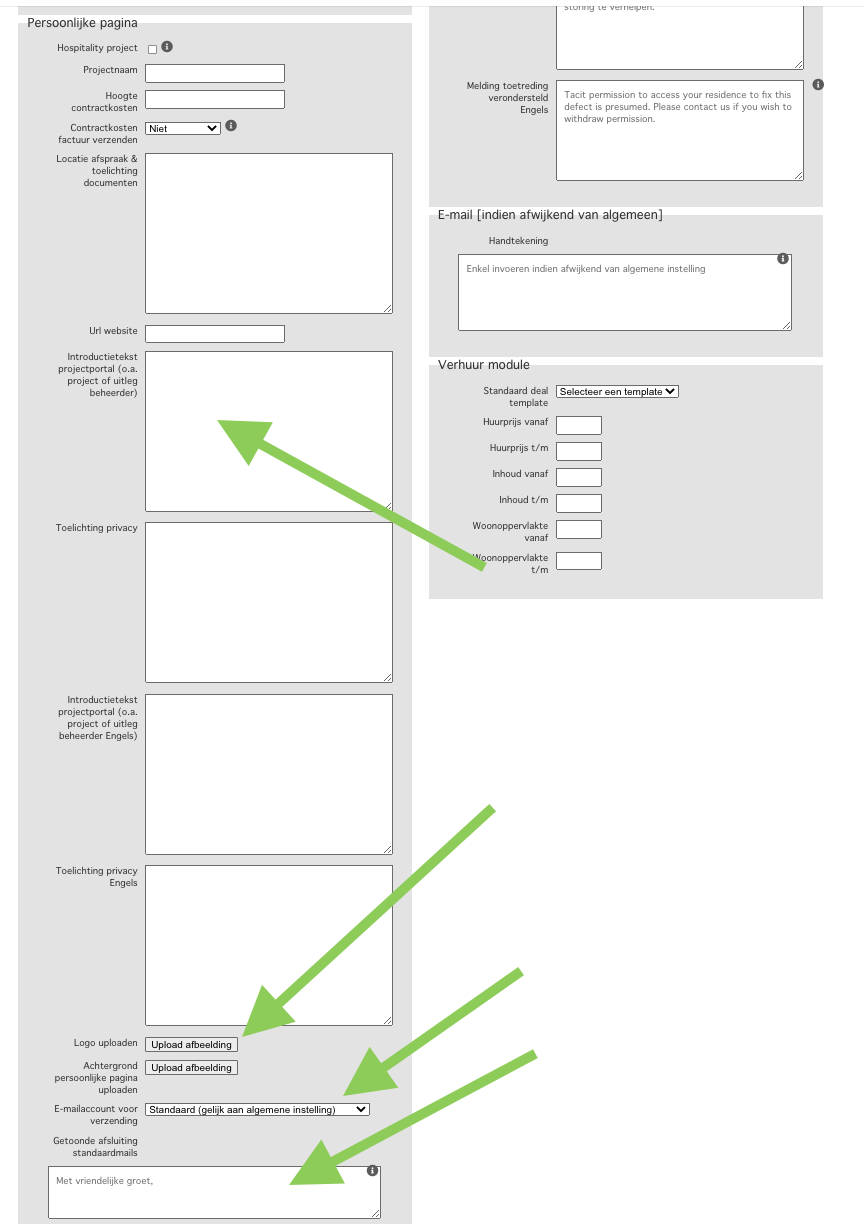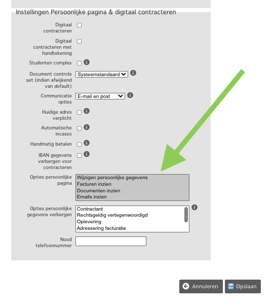 Daarnaast kun je aangeven wat er moet worden getoond en wat er verplicht is op de huurdersportaal.