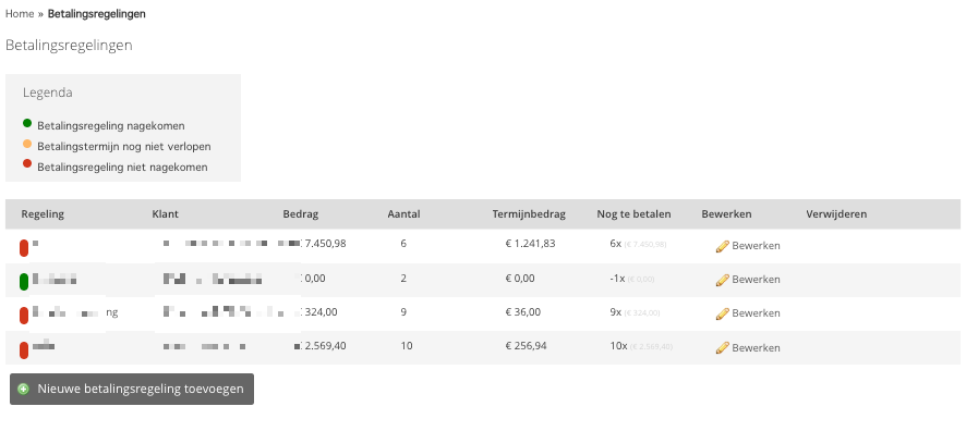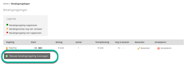 Klik op deze pagina op "Nieuwe betalingsregeling toevoegen".