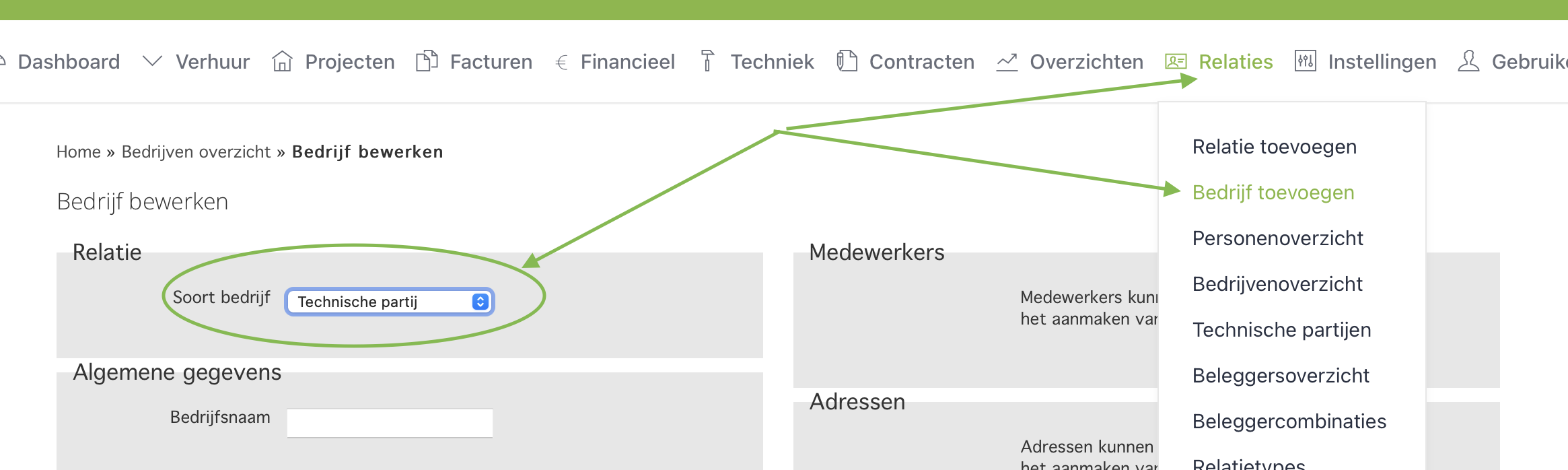 " Relaties -> Bedrijf toevoegen"