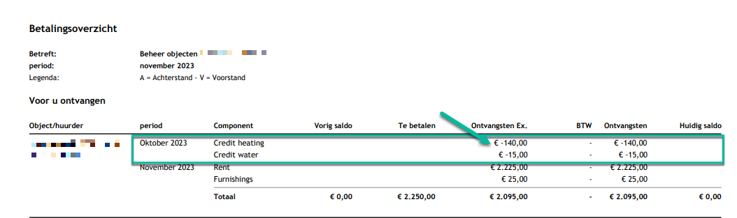 Op deze manier zal de credit in mindering worden gebracht op de beleggerafrekening.