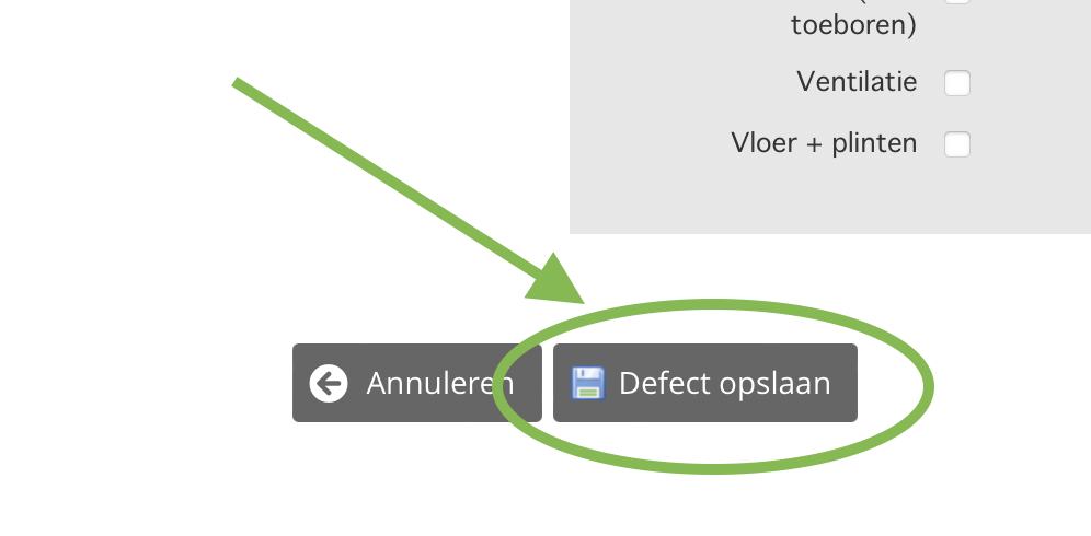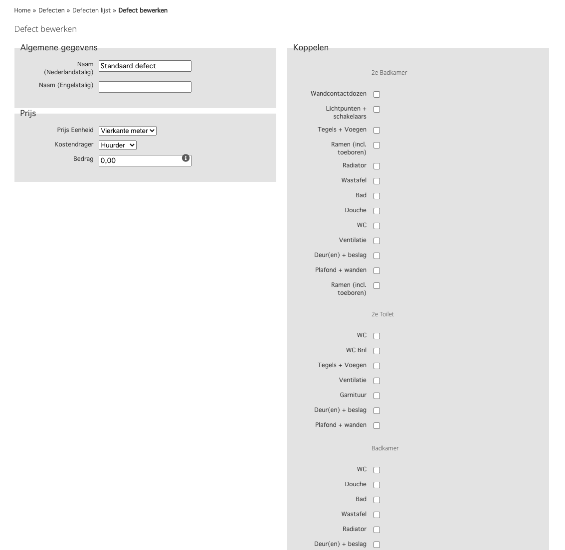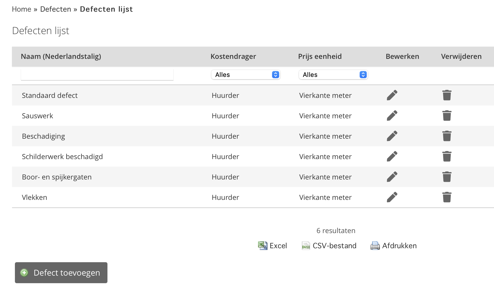 Klik op "Bewerken" om een defect aan te passen of klik op ‘"Defect toevoegen" om een nieuw defect toe te voegen.