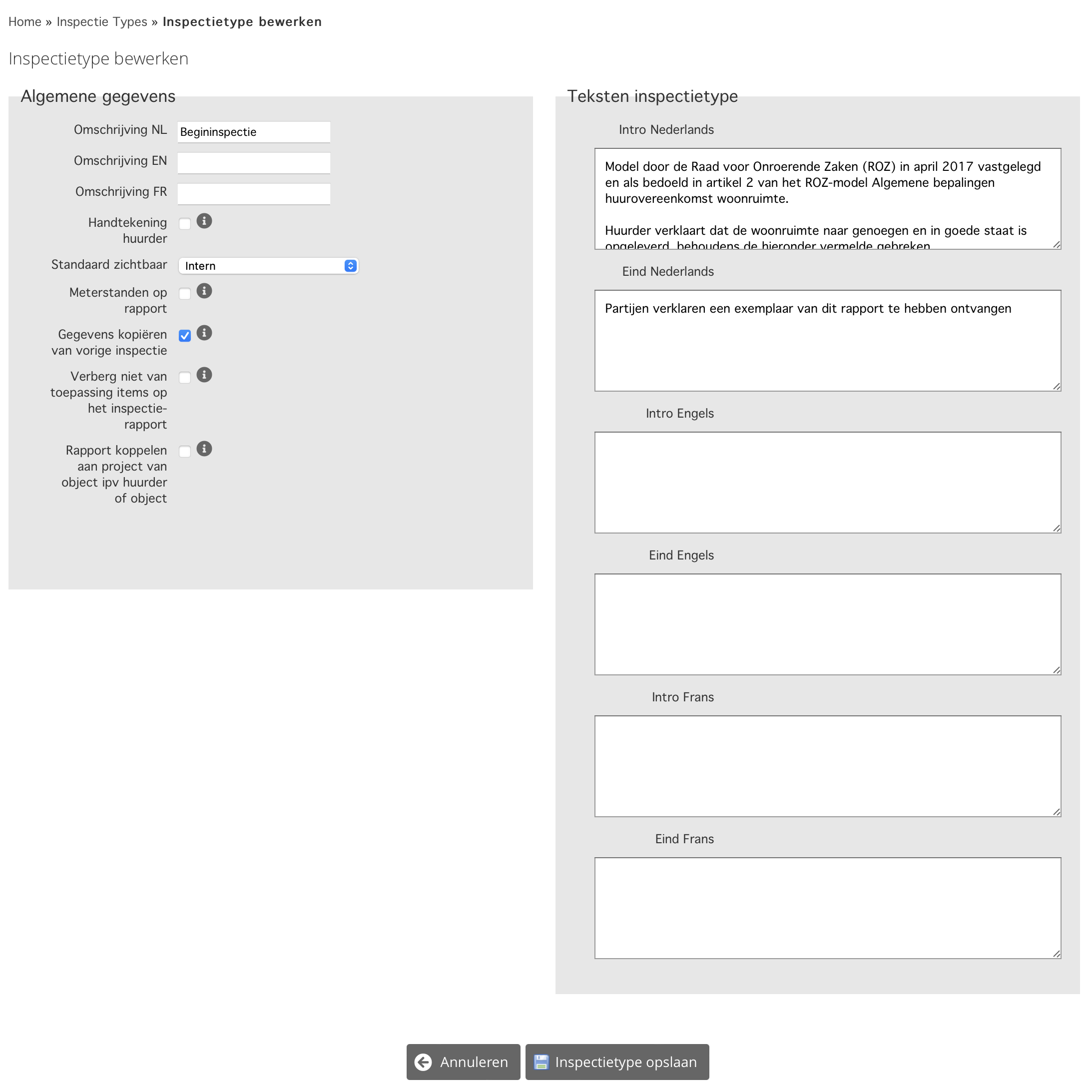 Ga hiervoor naar: “Instellingen -> Inspecties -> Types"
