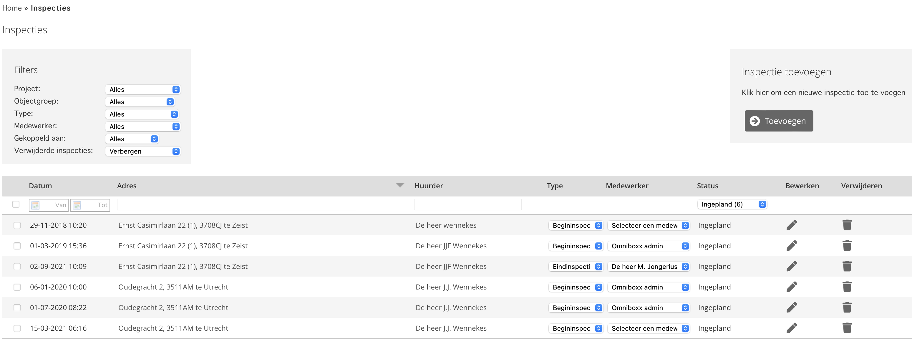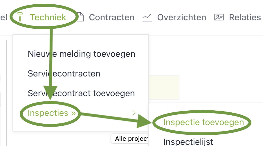 Ga hiervoor naar: "Techniek -> inspecties -> inspectie toevoegen"