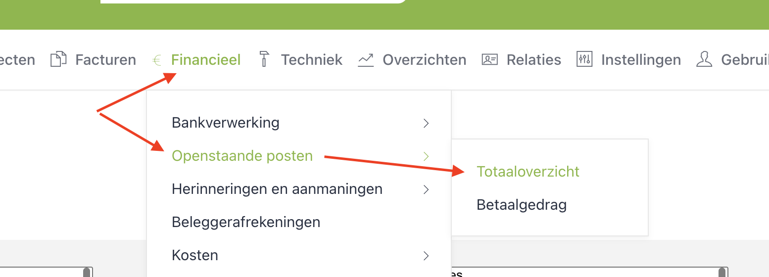 Ga naar: FINANCIEEL -> OPENSTAANDE POSTEN -> TOTAALOVERZICHT