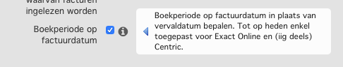 In Exact moet de meegegeven maand in de boekhouding geopend zijn om te zorgen dat de factuur in die maand geboekt wordt. Een alternatief is om in Exact Online de instelling “Periode-datum-controle” aan te passe om ervoor te zorgen dat Exact niet meer naar het "periode-veld" kijkt.