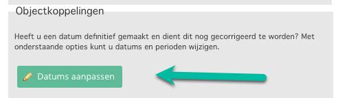 Met de functionaliteit "datum aanpassen" kunnen definitief ingevoerde data zoals bijvoorbeeld de ingangsdatums en einddatum bij een object bewerkt of verwijderd worden.