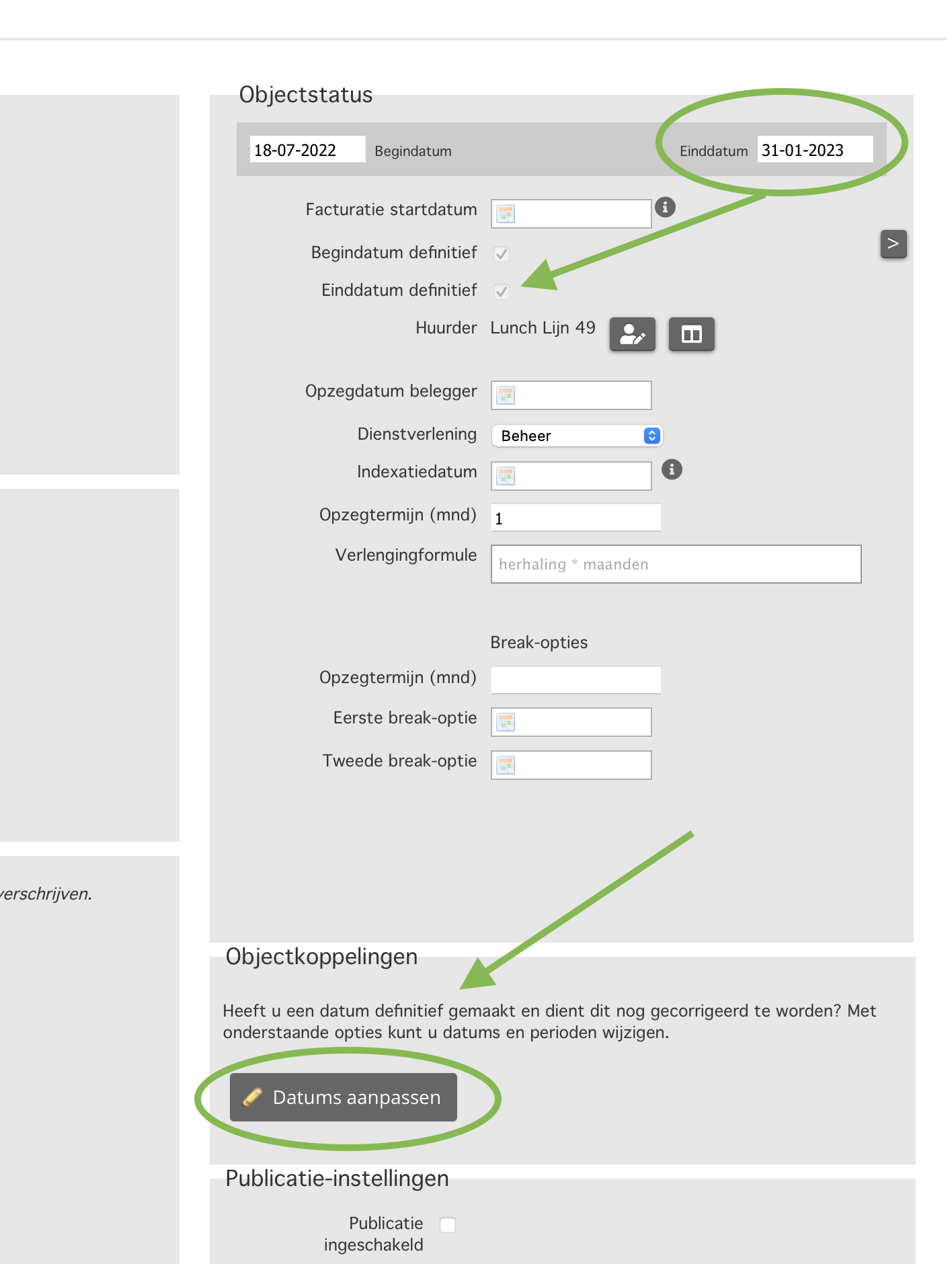 - het object heeft geen actieve workflow deal in het verhuur-proces.