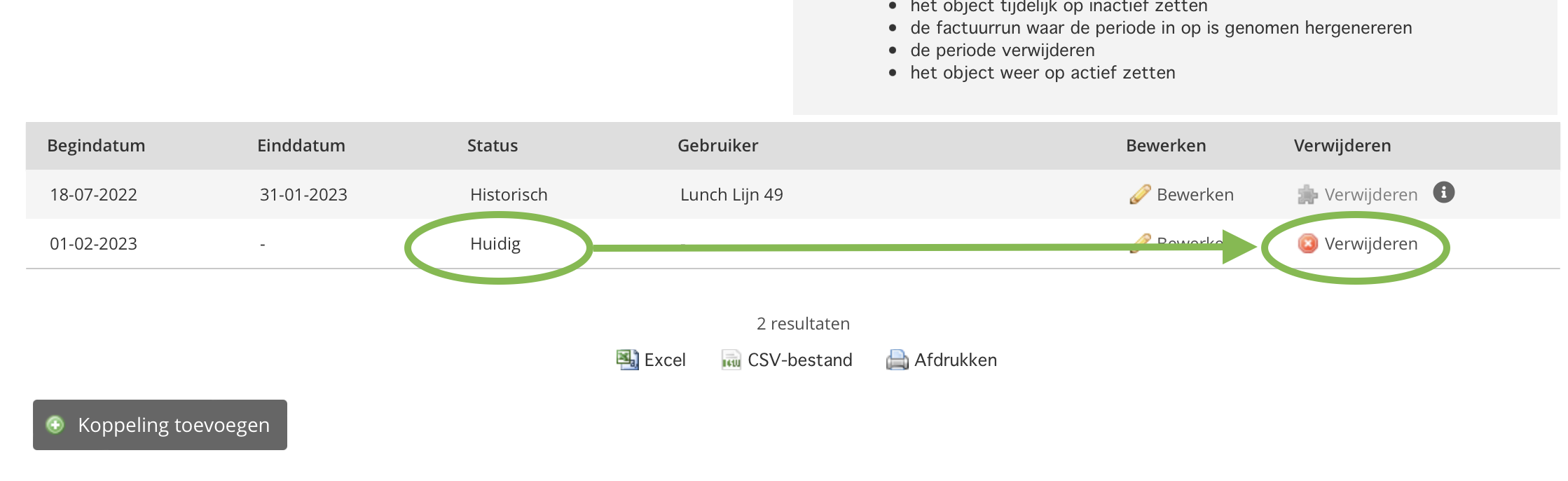 Voorwaarden voor het verwijderen van een periode: