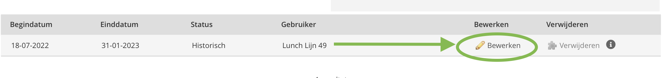 Nu kan, het voorbeeld volgend, de gebruiker "Lunch Lijn 49" bewerkt worden.