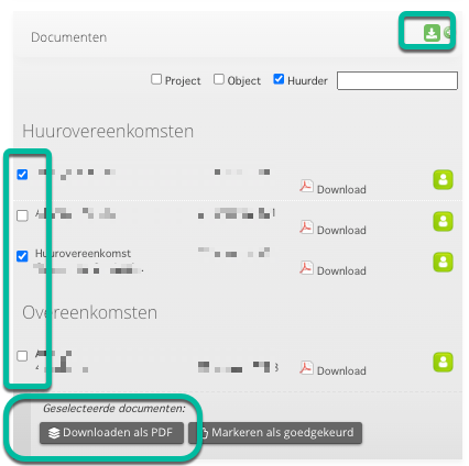 Het is mogelijk om een deel of het totale huurdossier te downloaden.
