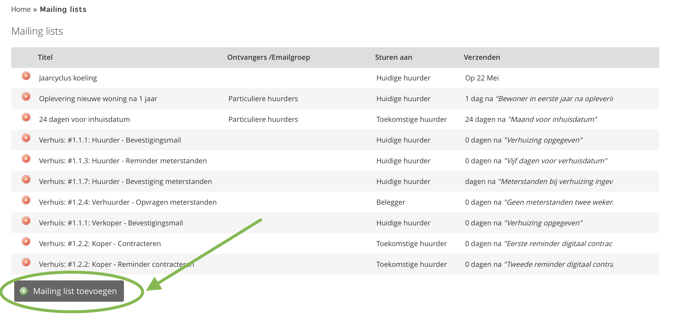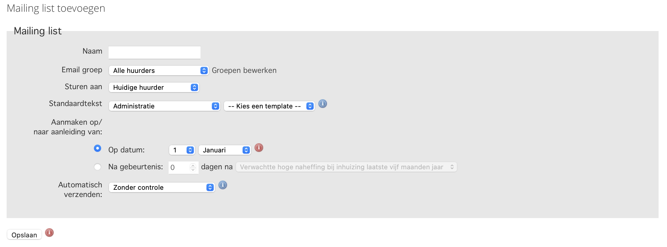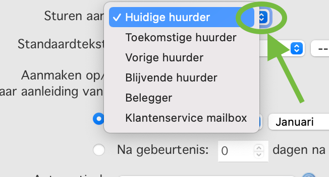 Hierbij moet u denken aan het verwelkomen van nieuwe huurders, een aantal dagen voor of na de in-huisdatum, een mededeling aan uw huurders / verhuurders etc.