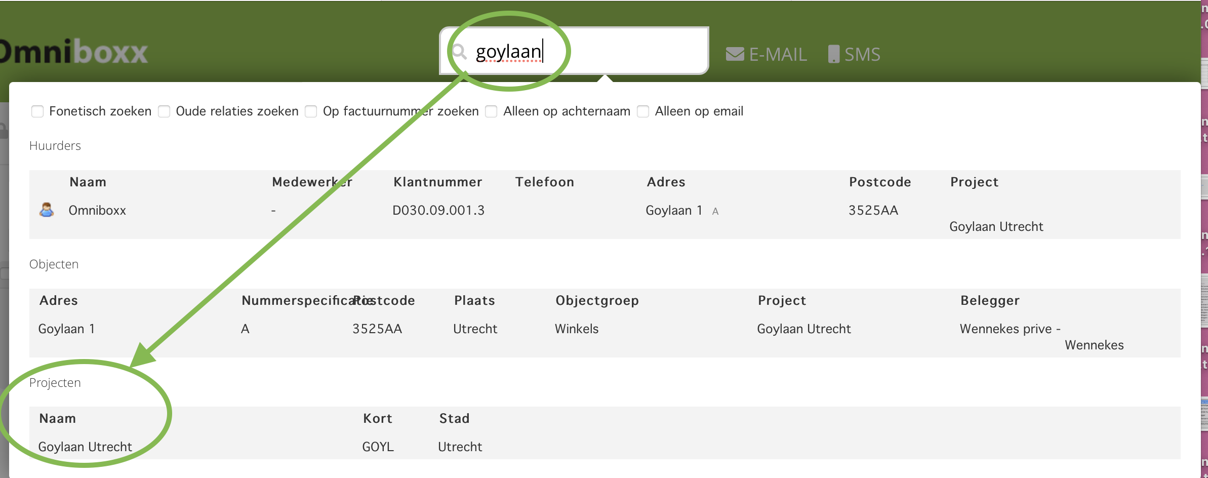 Ga naar het desbetreffende project. Vul hiervoor de naam in het zoekveld in en klik op de naam van het project.