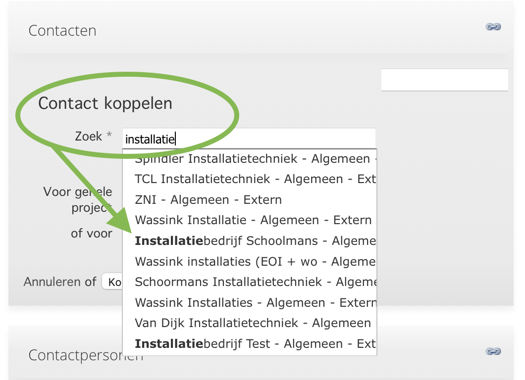 Typ hiervoor minimaal een deel van de contactnaam in en selecteer aansluitend de juiste door op de naam te klikken.