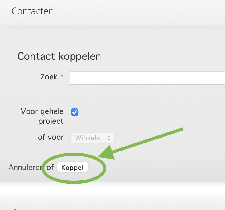 Klik op de hyperlink-icoon in het veld “Contacten”.