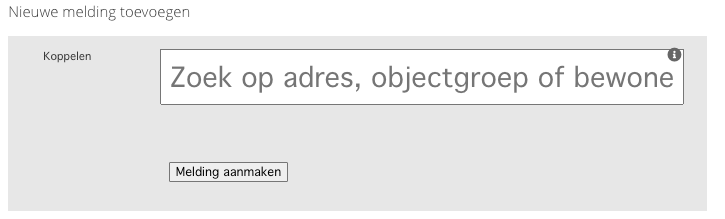 Voer hier de huurder of het adres in en klik op "Melding aanmaken".