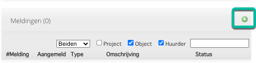 Klik bij de huurder in het kader "Meldingen" op het groene "plus”-icoon.