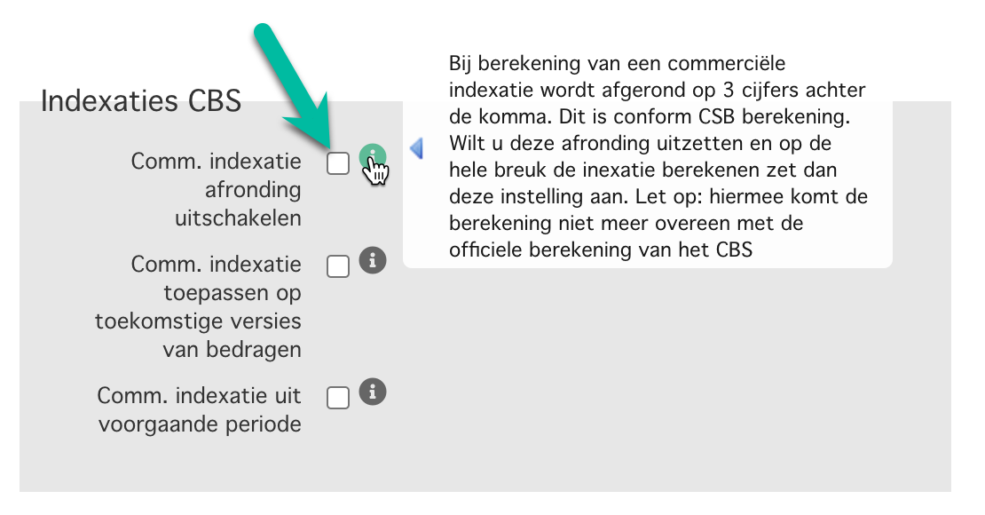 LET OP: Als de huurder de indexatie narekent op de CBS site kan de uitkomst van de berekening door het uitzetten van de afronding afwijken.