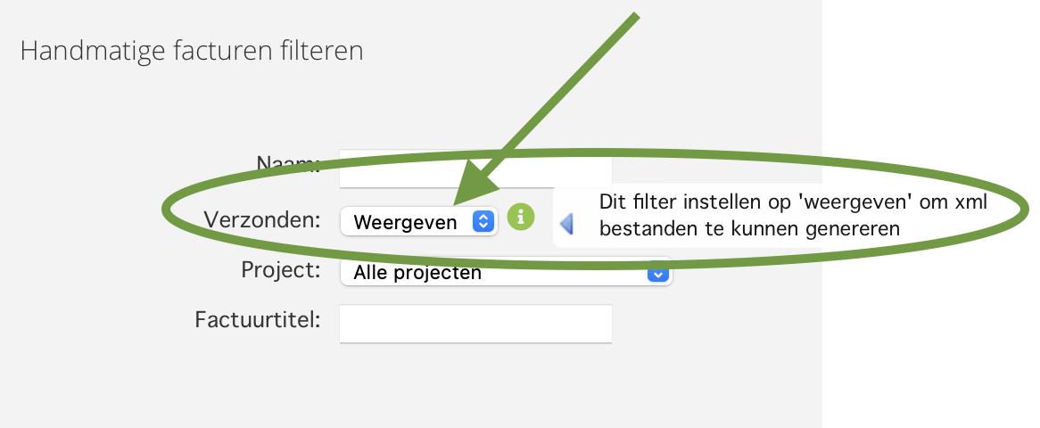 Bovenaan het scherm van de handmatige facturen vind u de mogelijkheid om XML-bestanden van de verzonden facturen te downloaden ten behoeve van uw financiële administratie.