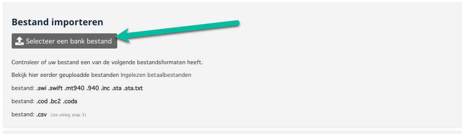 Klik voor het inlezen van een bankbestand op "selecteer een bankbestand":