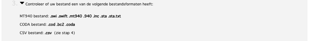 - MT940 bestand: .swi .swift .mt940 .940 .inc .sta .sta .txt