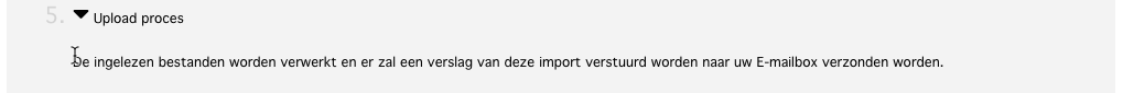 Na het selecteren van het bestand en het uploaden zal Omniboxx elke 10 minuten de geuploade bestanden verwerken en daarvan een verslag mailen naar het mailadres dat tijdens de implementatie is ingesteld.