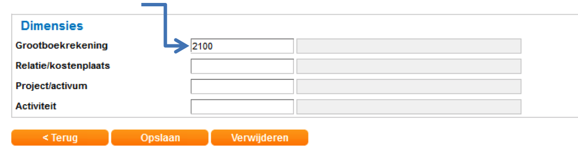 Met de onderstaande instelling zal de applicatie een boeking maken op de tussenrekening 2100.