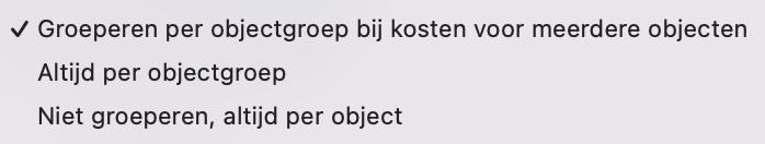 Inkomsten groeperen per objectgroep: Bij de specificatie van de kosten worden deze, indien gekozen wordt voor "groeperen" per objectgroep gebundeld.