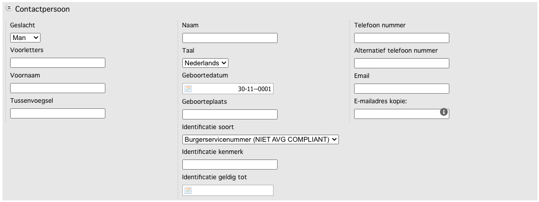 Geslacht: Selecteer hier het geslacht. Dit wordt gebruikt in aanspreektitel in communicatie uitingen.