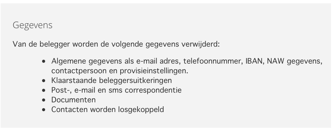 Ad 2: Overzicht met de gegevens van de belegger die worden verwijderd