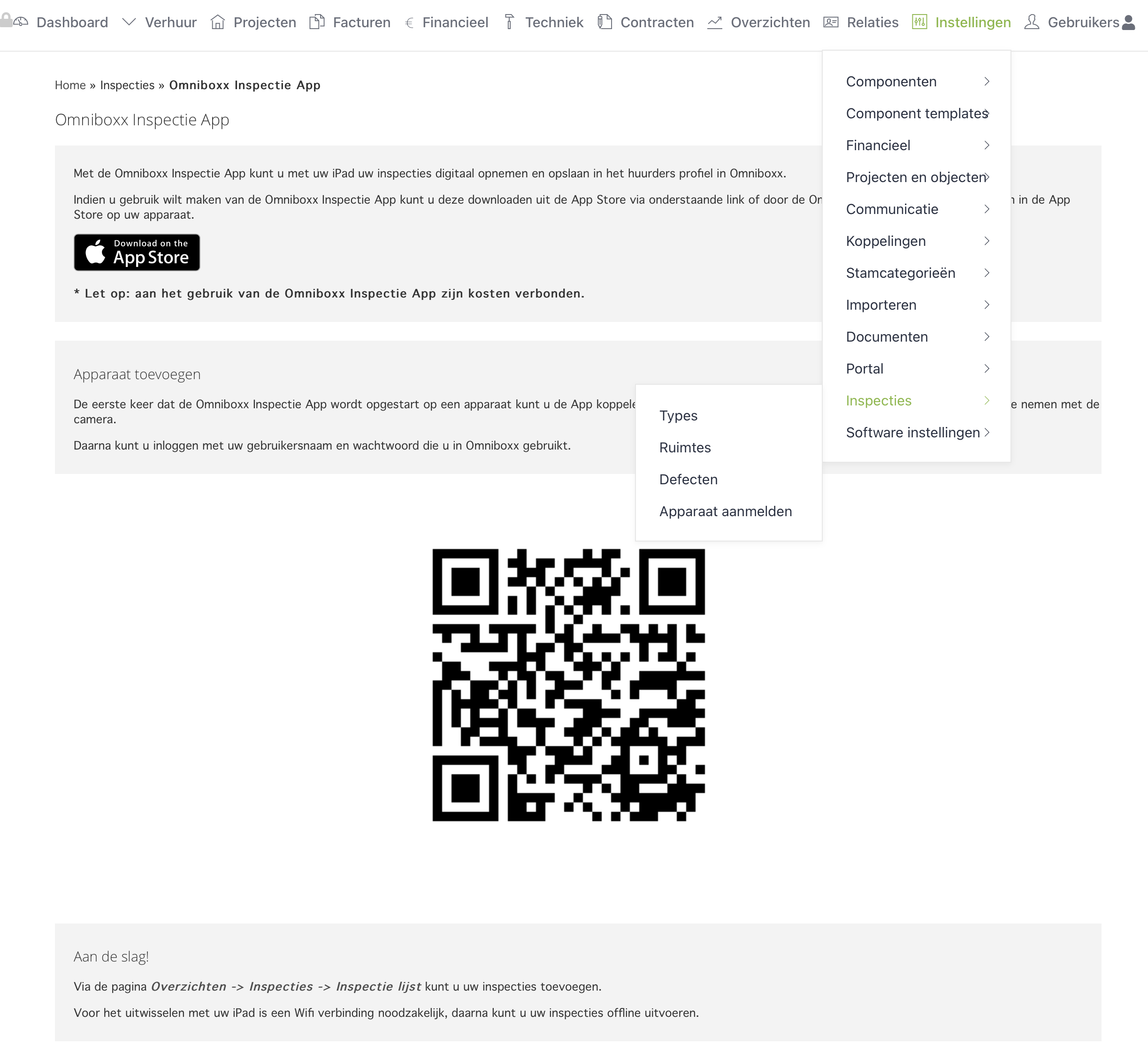 Ga hiervoor naar: "Instellingen -> Inspecties -> Apparaat aanmelden"