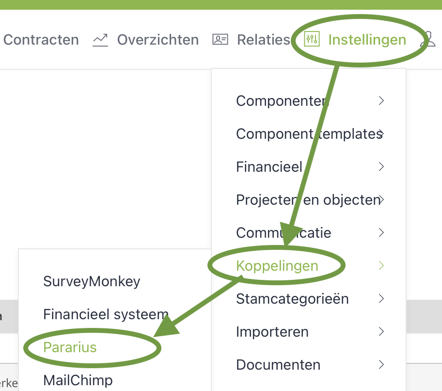 Ga hiervoor naar: "Instellingen -> Koppelingen-> Pararius"