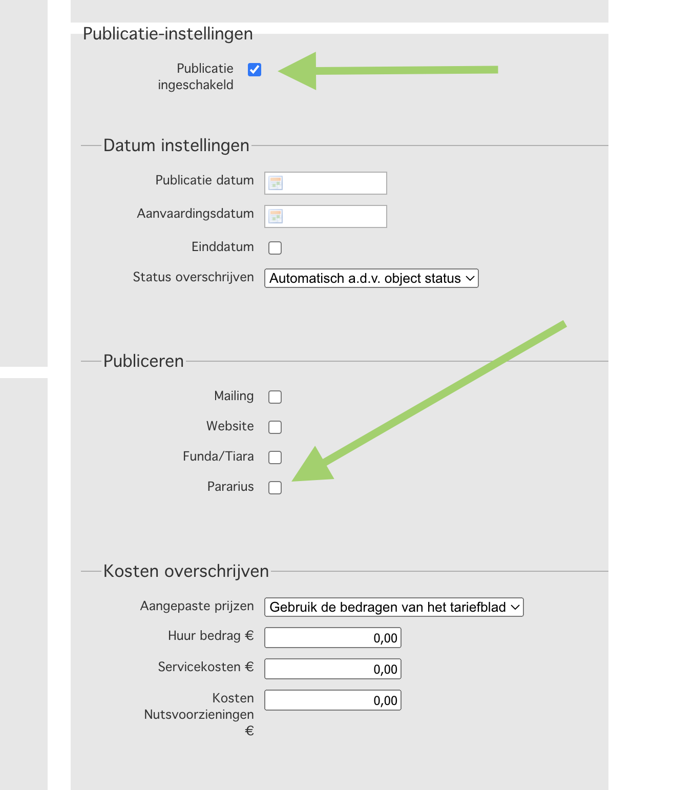 Pararius: voor publicatie vanuit Pararius ook aanvinken.