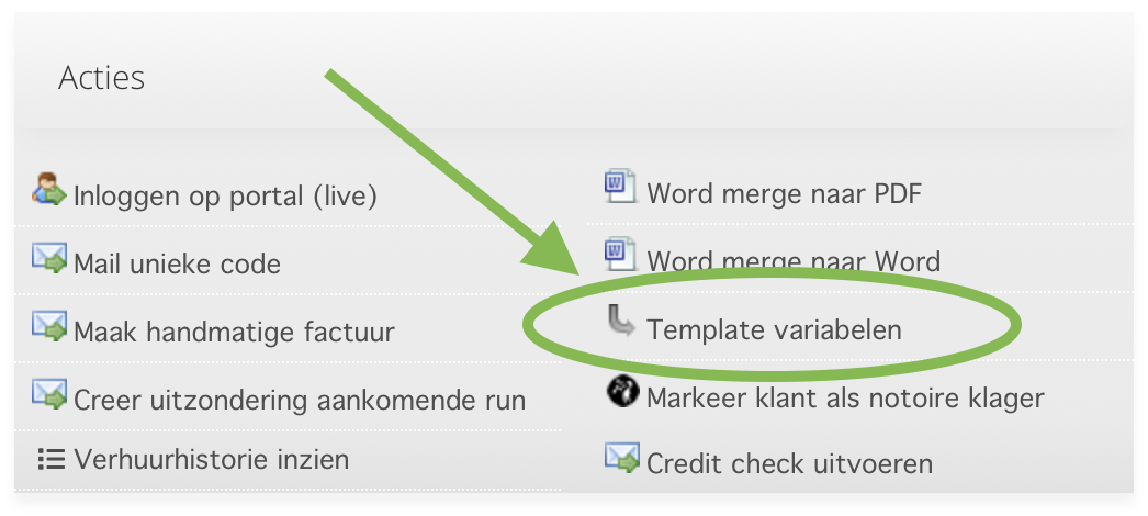 Klik hiervoor in het veld "Acties" op "Template variabelen"