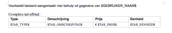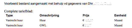 Deze zijn vanwege de toepassing en de inzichtelijkheid dus het beste uit te drukken in tabelvorm en worden huurcomponenten dus niét in een document verwerkt met een enkele variabele.