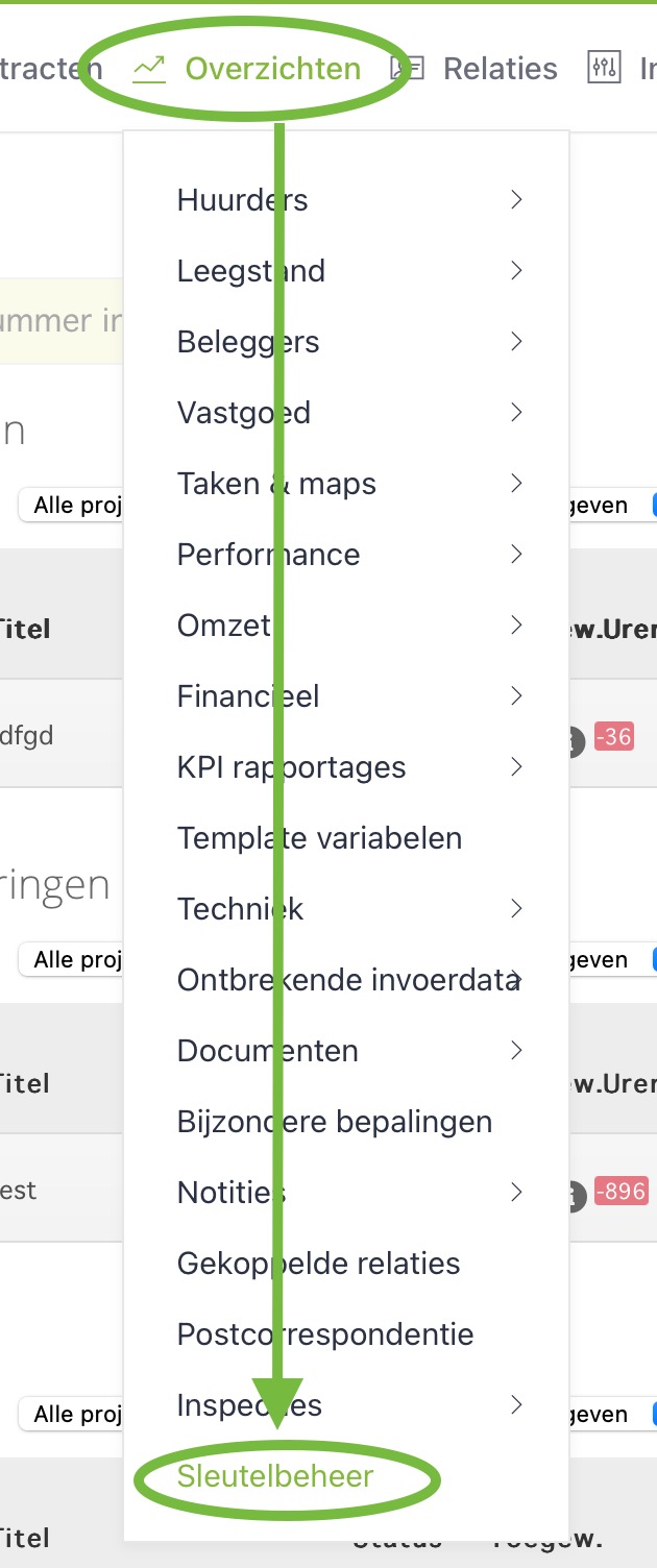 Ga hiervoor naar: “Overzichten > Sleutelbeheer”