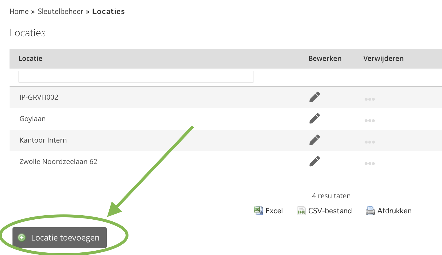 Het scherm "Locaties" opent, klik daar op "Locatie toevoegen"
