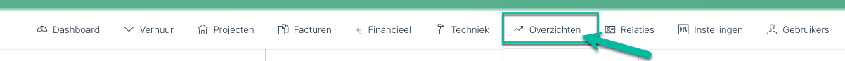 In Omniboxx zijn diverse standaard overzichten beschikbaar. De meeste overzichten zijn te vinden onder "Overzichten" in de menubalk: