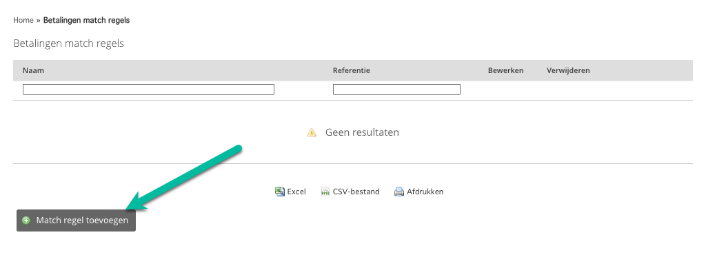Voor bankregels die vervolgens niet kunnen worden gekoppeld aan een openstaande nota, omdat er bijvoorbeeld geen factuur aan ten grondslag ligt (zoals VVE kosten), kan een match regel worden ingesteld zodat de bankregel alsnog geautomatiseerd afgeletterd wordt in de toekomst.