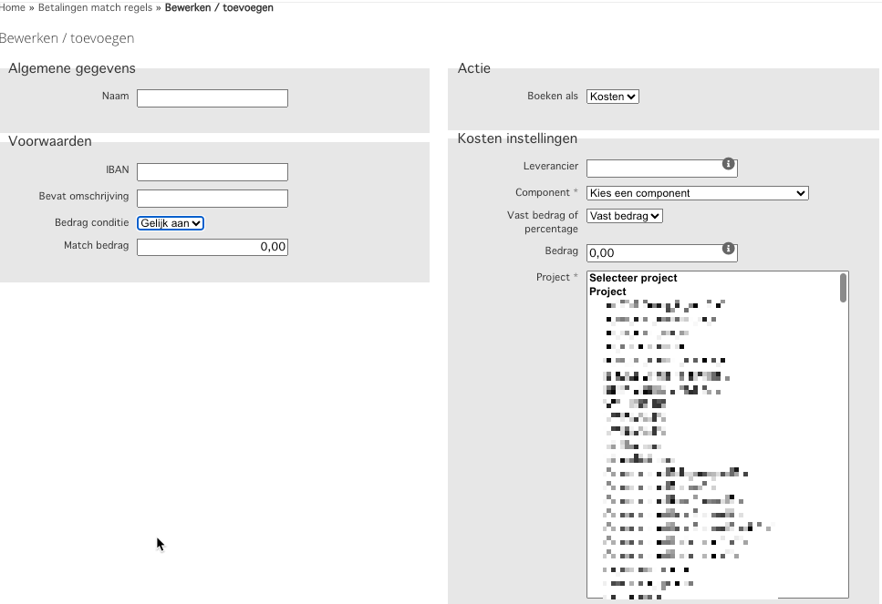 Project: Hier kunt het project kiezen waar de betaling op van toepassing is.