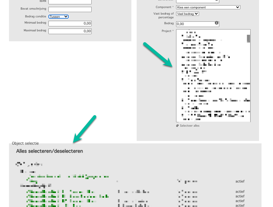 Hier kan, op basis van geselecteerd(e) project(en) een keuze gemaakt worden uit 1 of meerdere objecten.