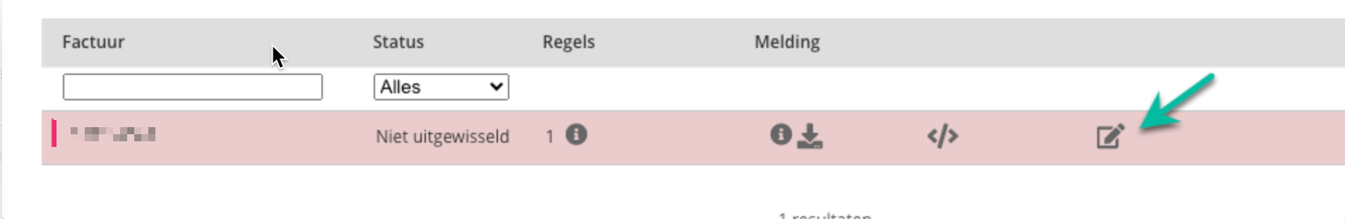Klik hiervoor op het potloodje van de factuur die niet is uitgewisseld: