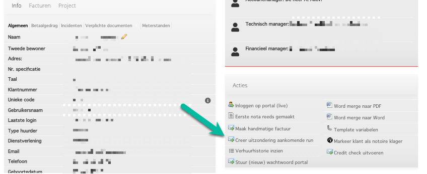 Ga naar de huurderspagina van de huurder en klik op "Creëer uitzondering aankomende run":