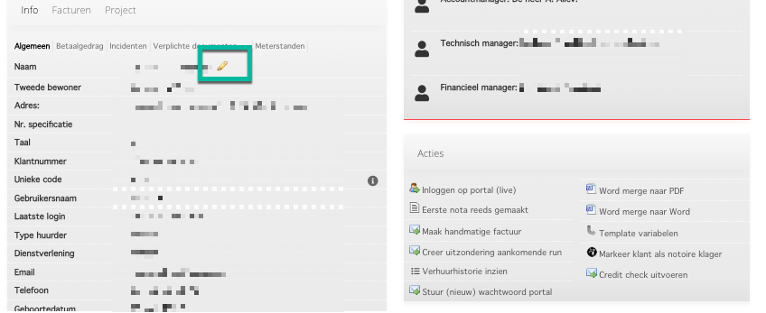 Ga naar de huurderspagina van de huurder en klik op het potloodje: