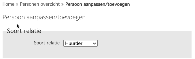 Of ga naar "Relaties -> Relatie toevoegen" en kies daar voor het toevoegen van een huurder.